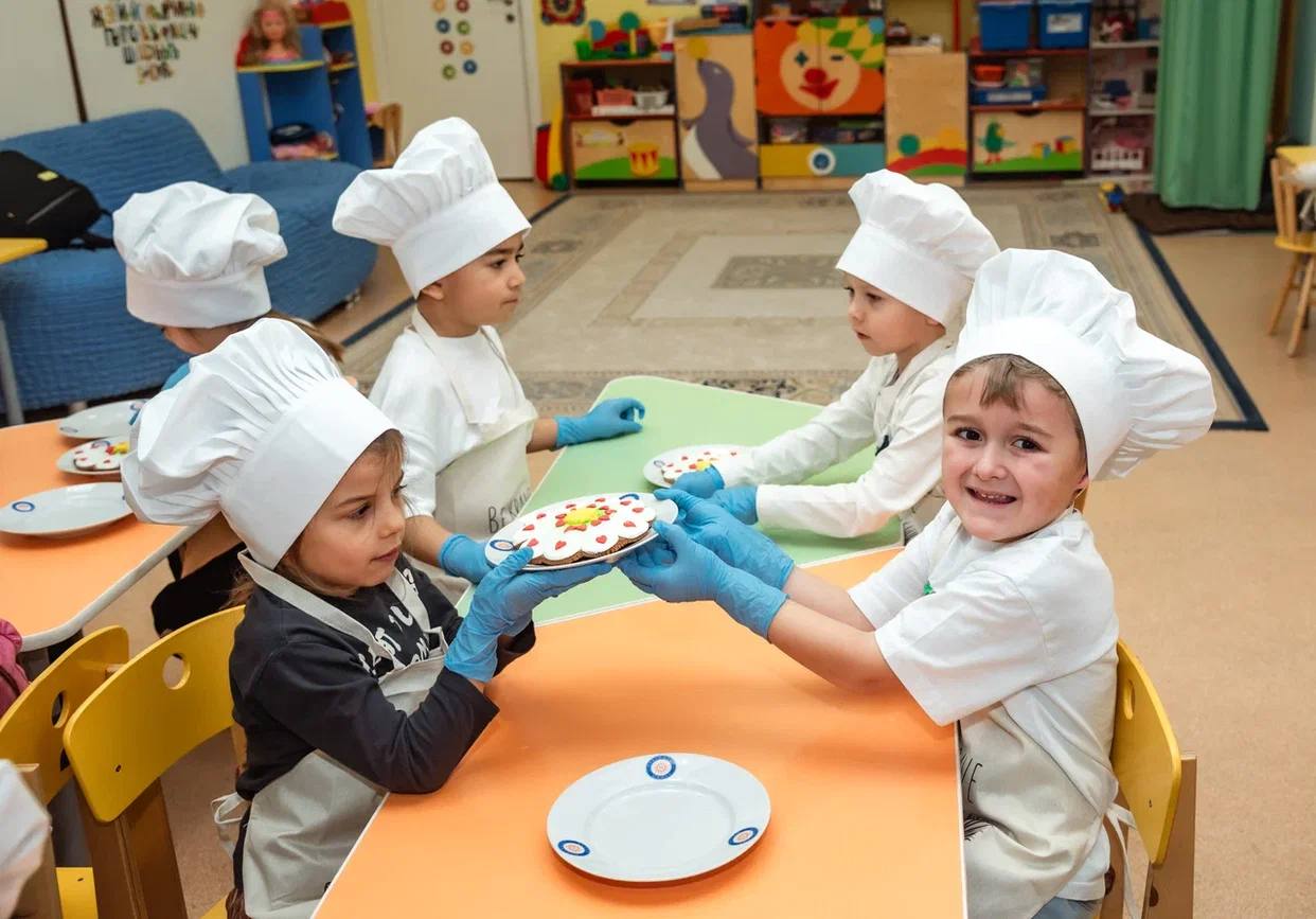 Детки подготовились заранее: накануне они сделали вкусные пряники своими руками, которые подарили юным актерам вместе с цветами!